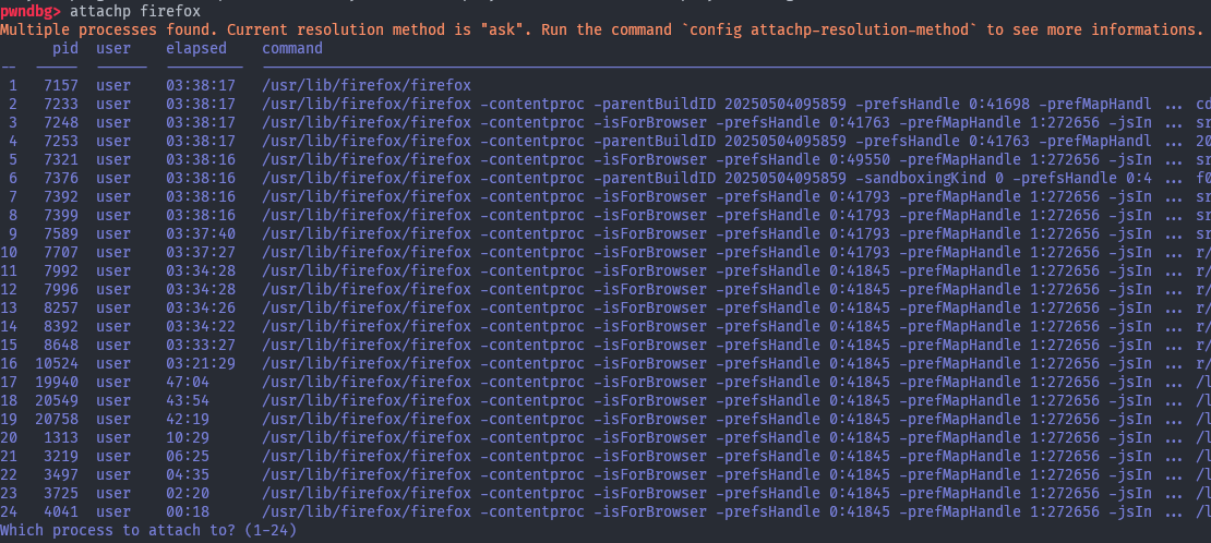 The days of running pidof in a different terminal are over. Use attachp to attach to any process by name, pid, arguments or device file!