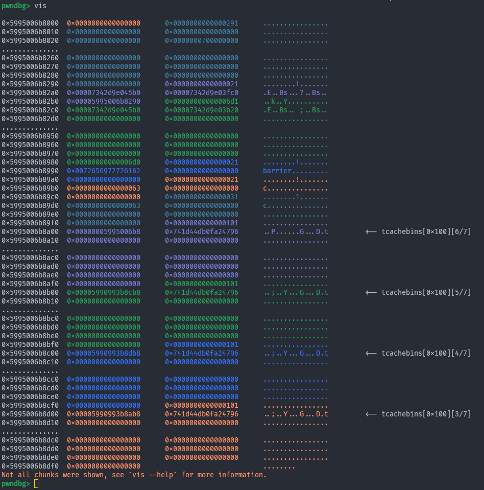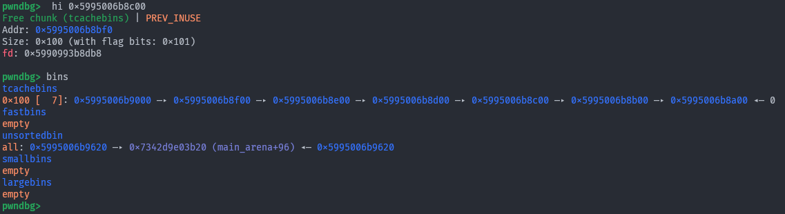 Pwndbg provides commands for inspecting the heap and the allocator's state. Currently supported are: